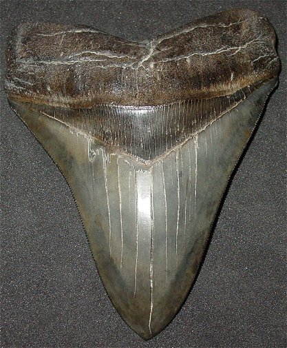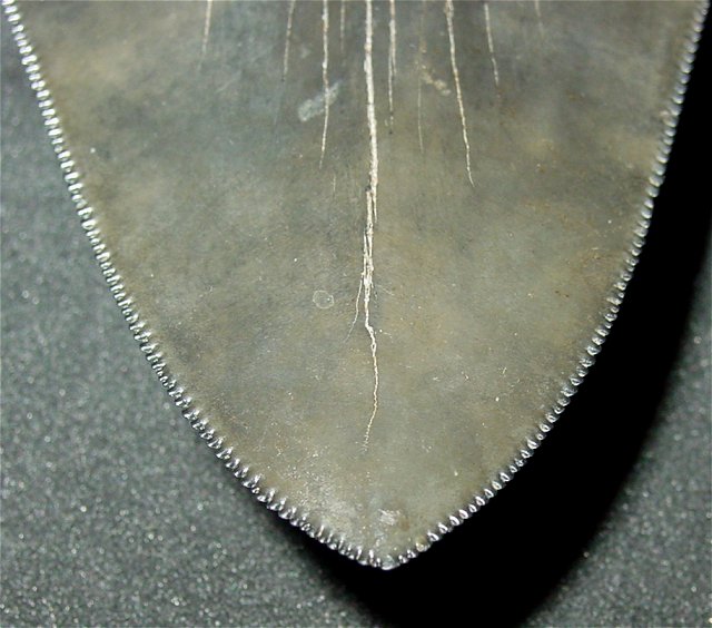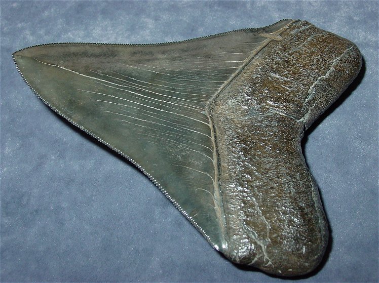 Dieser Zahn ist einfach beeindruckend schön !!! Der Zahn hat neben einer TRAUMHAFTEN Symmetrie zwei absolut PERFEKTE und SUPER SCHARFE Schneiden und eine absolut PERFEKTE Spitze !!! Auch die Wurzel ist wunderbar erhalten und verleiht dem Zahn sein WUNDERSCHÖNES Gesamtbild !!! Die ebenfalls wunderbar erhaltene Bourrelet ist ein "Gedicht" und die Krönung bei diesem wunderschönen und beeindruckenden GIGANTEN. Seht Euch die SUPER SCHARFEN und PERFEKTEN Schneiden genau an, soetwas sieht man nicht so oft !!! Ein FANTASTISCHER Zahn !!! O |
