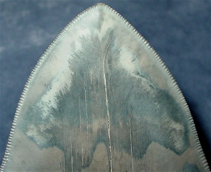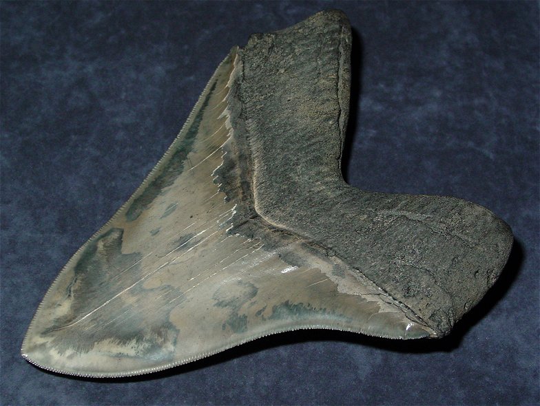 Dieser MEG ist ein WAHNSINN !!! Ein absolut spektakulärer AUSNAHME TRAUMZAHN Allein die SUPER, SUPER scharfen und PERFEKTEN Schneiden sind schon einzigartig für einen GIGANTEN dieser Größe. Seht Euch jetzt noch die traumhafte Form und Symmetrie dieses Zahnes an und Ihr wißt was ein WELTKLASSE Meg ist !! Aber das Beste kommt noch, habt Ihr jemals ein solch FANTASTISCHES Farbspiel bei einem MEG gesehen, geschweige denn bei einem GIGANTEN dieser Größe ?! Ich kann das gar nicht beschreiben - es ist einfach umwerfend ! Das sind 14,1 cm und 375 g absolute WELTKLASSE !! ! |
