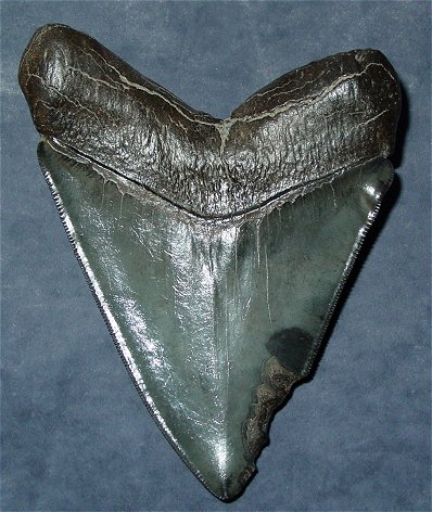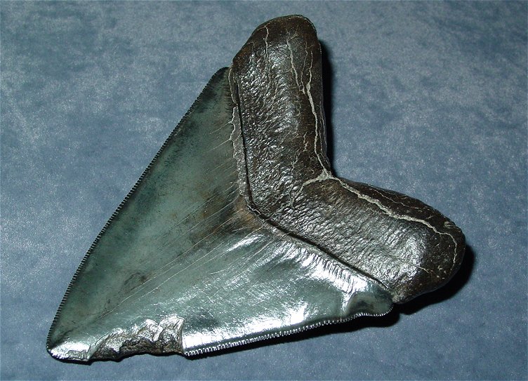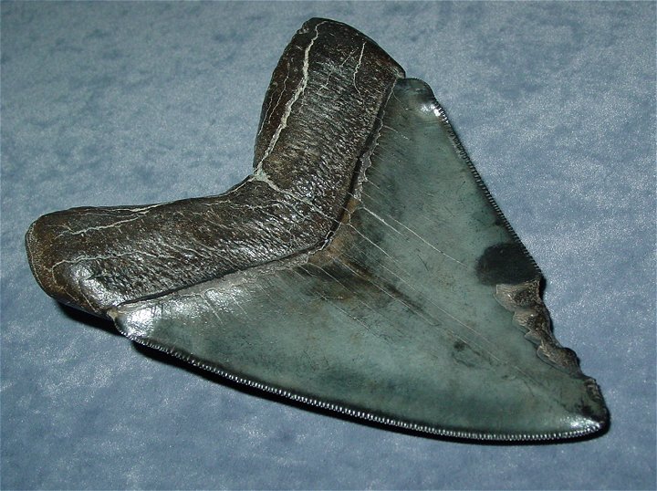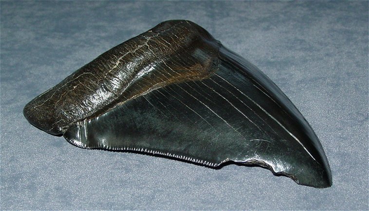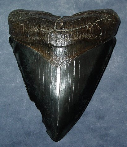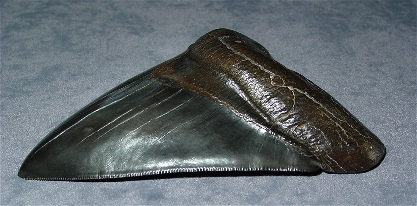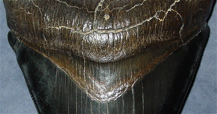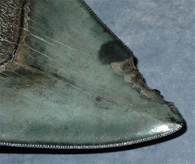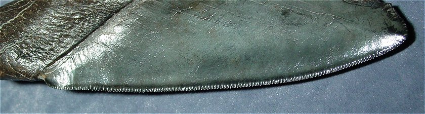 Dieser FANTASTISCHE Zahn besticht ebenfalls durch SELTENE Besonderheiten !!! Dieser massige GIGANT hat eine wunderbar SCHWARZE FARBE und als Kontrast eine wirklich traumhafte und einzigartige BRAUNE Bourlette (Dentalband) !!! Die nächste Besonderheit sind die absolut SUPER, SUPER SCHARFEN und PERFEKTEN Schneiden !!! Eine Schneide hat weiterhin einen sehr schönen "Wrinkle" (Falte in der Schneide). Was diesen alten HAUDEGEN allerdings zu einer einzigartigen RARITÄT macht, sind die wunderschönen BITEMARKS, die ich in so einer FANTASTISCHEN Ausprägung NUR bei einem anderen Zahn gesehen habe !!! Ja, dieser Zahn hat schon Walknochen zu spüren bekommen und ist vermutlich im Fressrausch, als er auf einen Walknochen traf, ausgefallen, Da dieser Zahn bei dem selben Tauchgang und nur einen Handgriff entfernt von dem Zahn MA 1 gefunden wurde, ist es SEHR WAHRSCHEINLICH, das sie von DEM SELBEN HAI stammen !!! Jepp, diese beiden Zähne sind vermutlich in der selben Schlacht "gefallen" !!! Diese beiden Zähne haben die mit Abstand SCHÖNSTEN Bitemarks die ich bisher gesehen habe !!! WAAAAHNSINN !!! * |