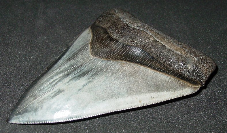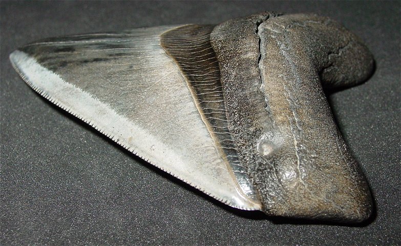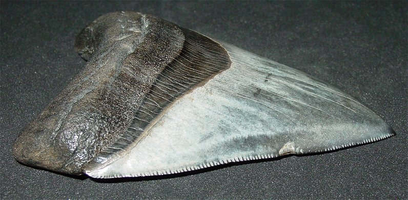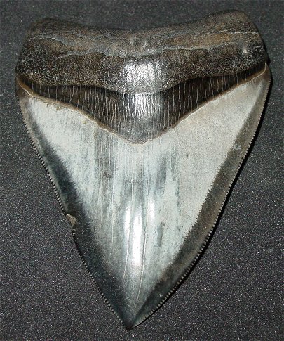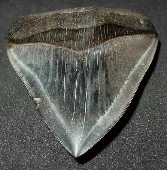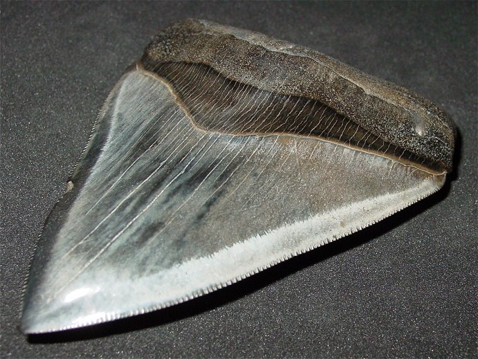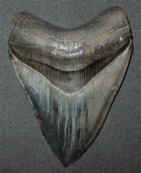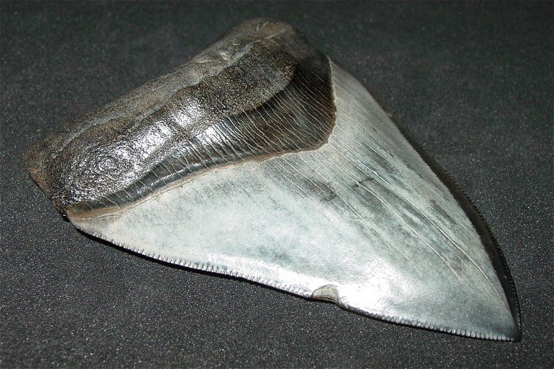 Dieser Zahn hat neben einer fantastischen Symmetrie und SUPER scharfen Schneiden eine einfach unvorstellbare Farbe !!! Der Zahn erscheint im Licht wirklich silber. Die Farben changieren im Licht und je nach Lichteinfall wechselt der Zahn auch seine Farbe. Aus diesem Grund ist der Zahn auch sehr schwer zu fotografieren. Ich habe aus den verschiedensten Perspektiven Photos gemacht, um einen möglichst guten Eindruck zu vermitteln. Ich habe noch NIE einen Zahn mit einer solchen Farbe gesehen - ein FANTASTISCHER Zahn !!! |