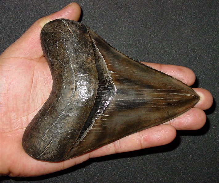 PERFEKTESTEN Zähne die ich je gesehen habe !!! Hier stimmt einfach alles: Farbe, Form, Emaille und natürlich die Größe. Außerdem sind viele Pyritkristalle eingelagert. An den Schneiden fehlt nicht eine Zacke !!!! |