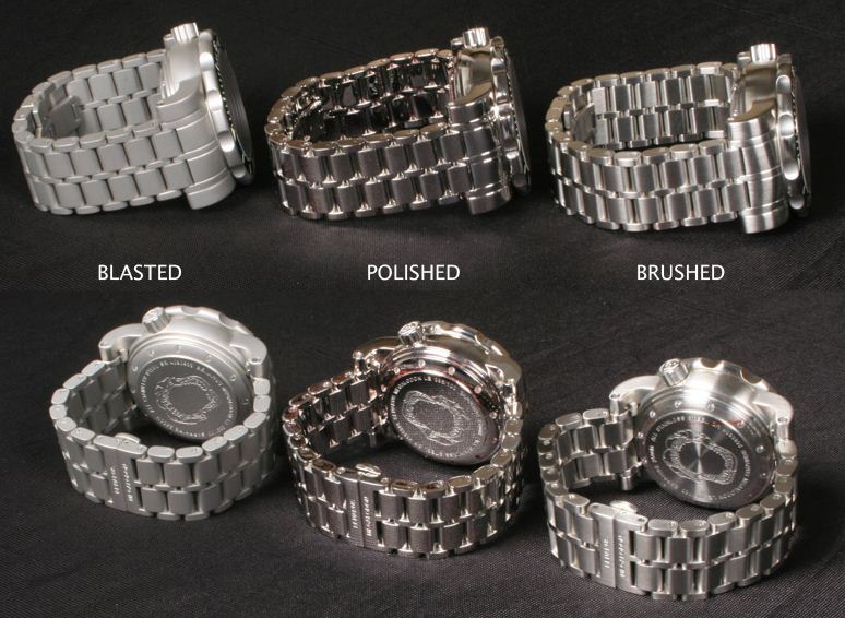 ( bead blasted), Stahl poliert ( polished ) und PVD beschichtet ( schwarz ) zur Auswahl.