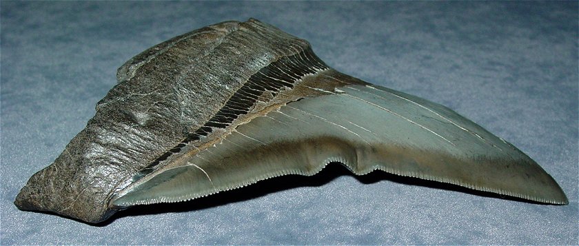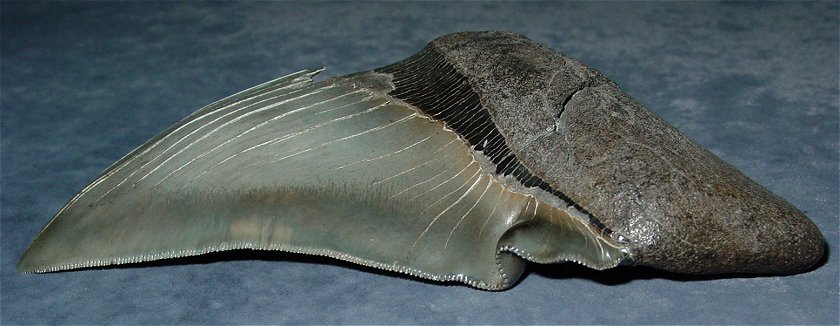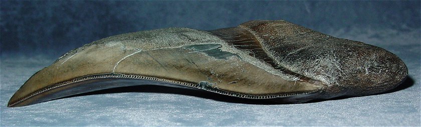 Die Falten in den Schneiden werden auch "Wrinkles" genannt. Man findet sie gelegentlich bei größeren Zähnen am Übergang von Schneide zu Wurzel. Hier eine Theorie zum Entstehen dieser Falten: Der nachwachsende Zahn hatte zwischen den anderen Zähnen nicht genug Platz, deshalb MUSSTE die Schneide Falten bilden. Falten in der Mitte der Schneide, wie bei dem ersten abgebildeten Zahn sind sehr aussergewöhnlich und selten. Genauso selten sind so gewaltige Falten wie bei dem Zahn ganz unten.